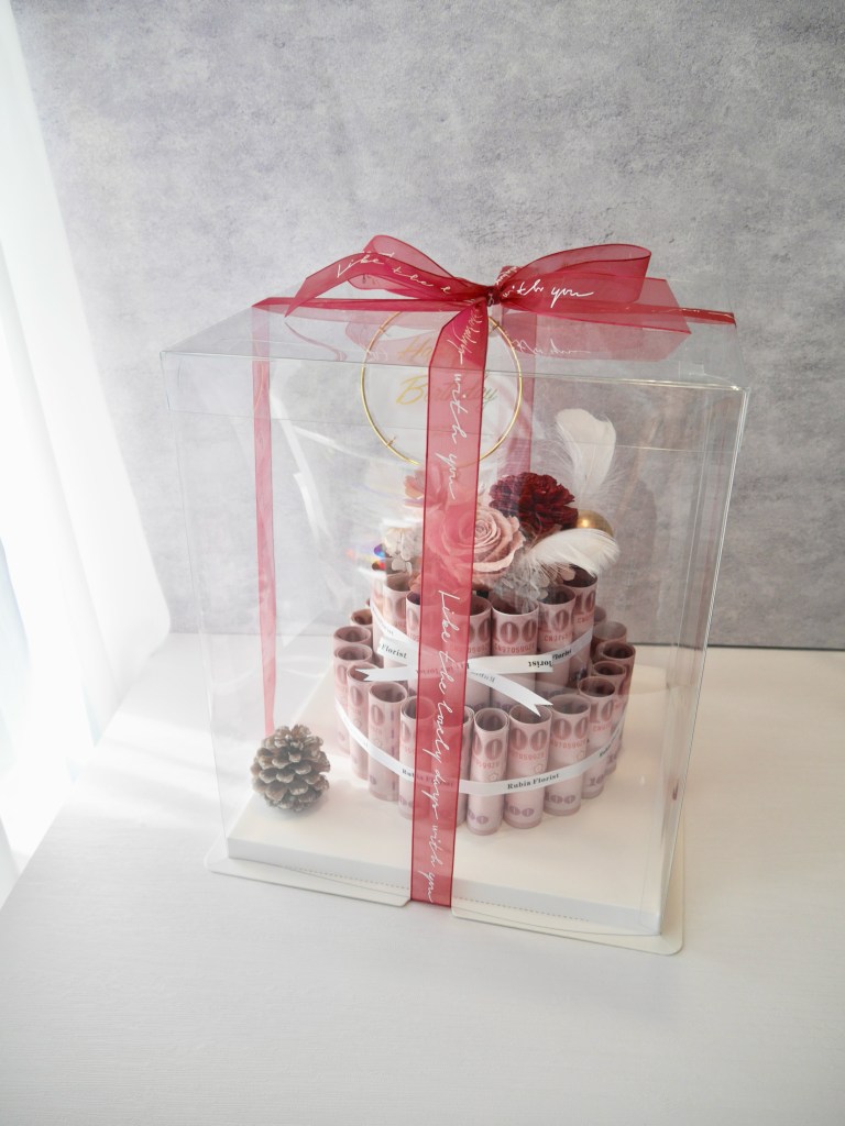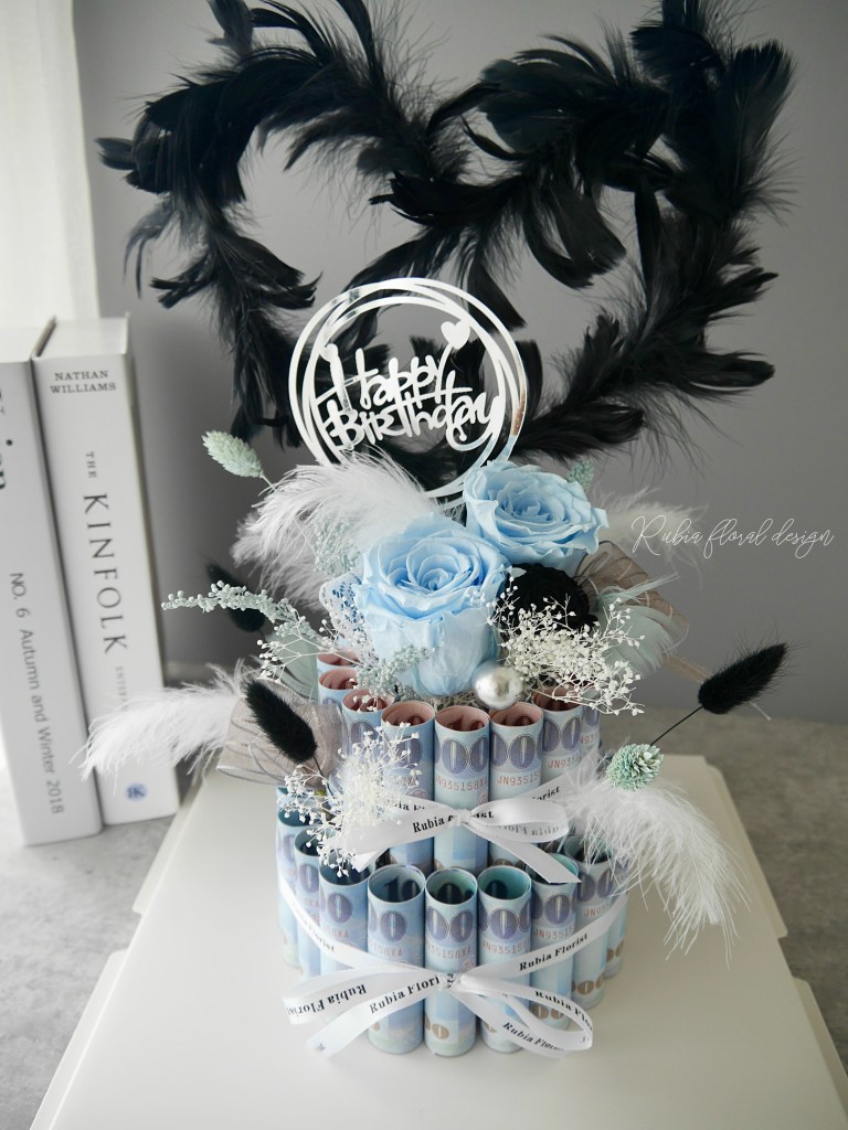 上方裝飾為永生花和乾燥花,基本配備含生日插牌,其餘小配飾根據當下材料而定。