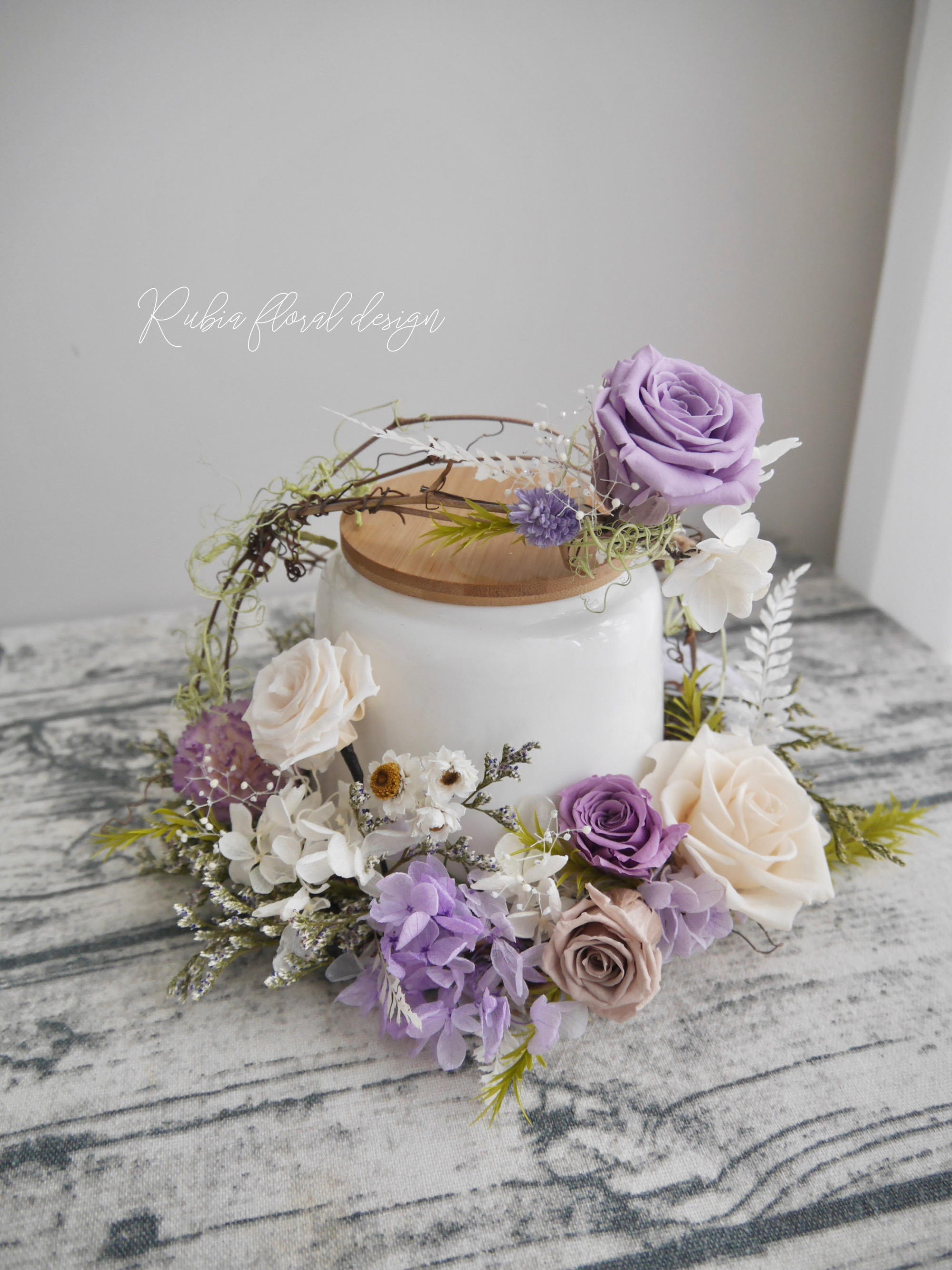 可將骨灰罐罐拿至工作室,花藝師較能準確地抓設計尺寸。然而骨灰對毛孩家人非常很重要,因此若罐罐裡已有骨灰,不需要將罐罐交給我,提供罐罐的精確尺寸即可。