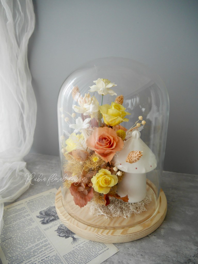 玻璃罩 12*18公分——象徵性用迷你罐子或試管瓶,裝部分骨灰或毛髮牙齒藏於花叢中。